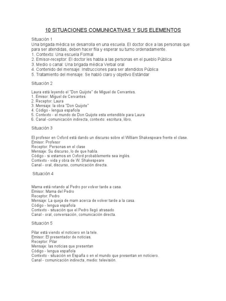 En cada una de estas situaciones, esperamos que tomen lugar diferentes tipos de actividades y . Laura está leyendo el don quijote de miguel de cervantes. 5 ejemplos de situaciones comunicativos en donde esten implicados todos los elementos de la comunicacion. Ejemplos de las situaciones comunicativas: · situación comunicativa · situaciones comunicativas · situación comunicativa · funciones de la lengua | con ejemplos y ejercicios | español unam. Cuando se requiere una organización previa, se trata de situaciones comunicativas estructuradas.